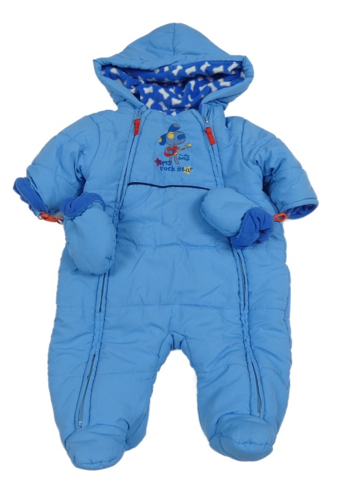 • Modrá prošívaná šusťáková zimní kombinéza s pejskem a kapucí + rukavice St. Bernard