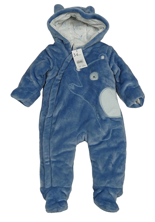 Nové - Modrá chlupatá zateplená kombinéza s medvědem a kapucí Mothercare