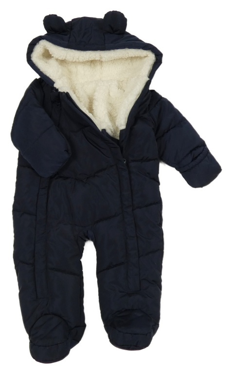 Tmavomodrá prošívaná šusťáková zimní kombinéza s kapucí s oušky Matalan