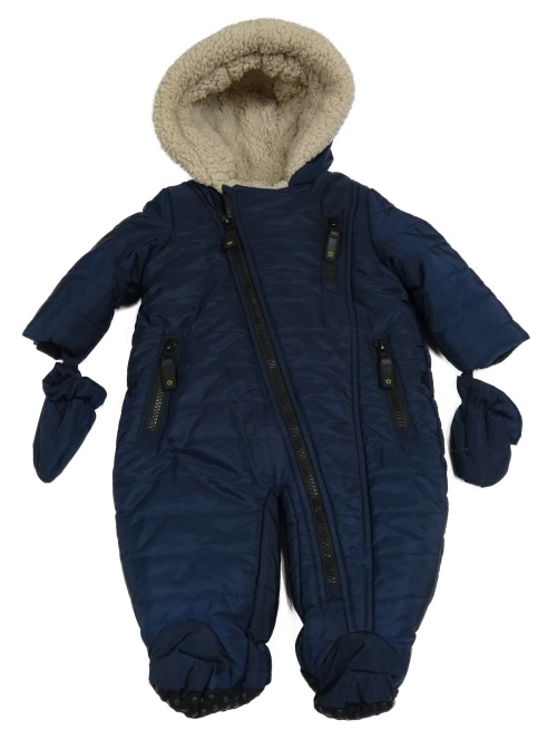 Tmavomodrá šusťáková zimní kombinéza s kapucí + rukavice Mothercare
