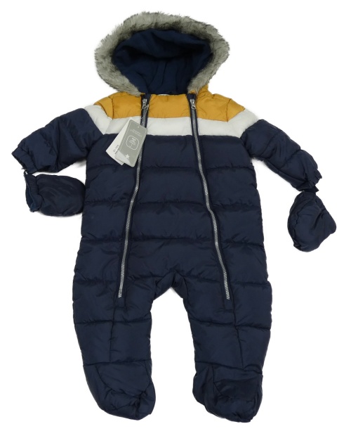 Nové - tmavomodro-okrová šusťáková zimní kombinéza s kapucí + rukavice F&F