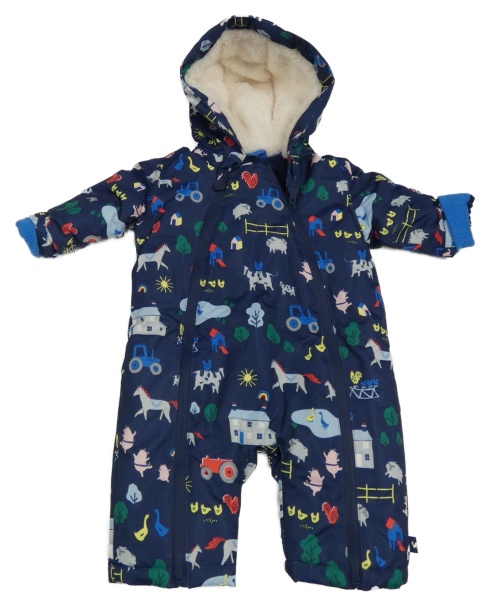Tmavomodrá šusťáková zimní kombinéza s farmou a kapucí