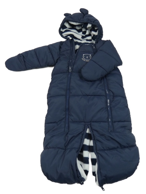 Tmavomodrá šusťáková zimní kombinéza/fusak s medvědem a kapucí H&M