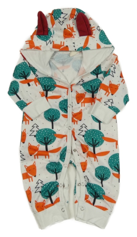 Bílo-zeleno-oranžová kombinéza se stromy a liškami a kapucí