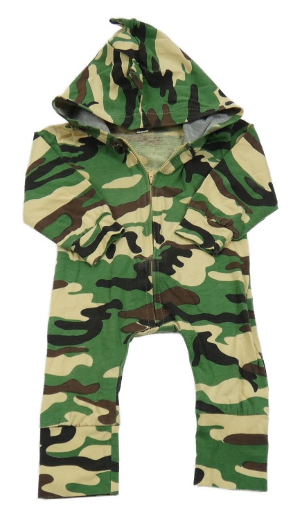Khaki-béžovo-černo-hnědá army kombinéza s kapucí