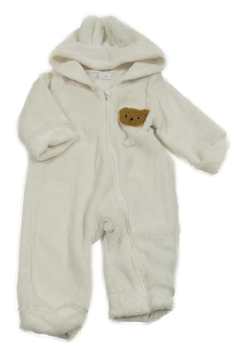 Bílá plyšová kombinéza s medvídkem a kapucí