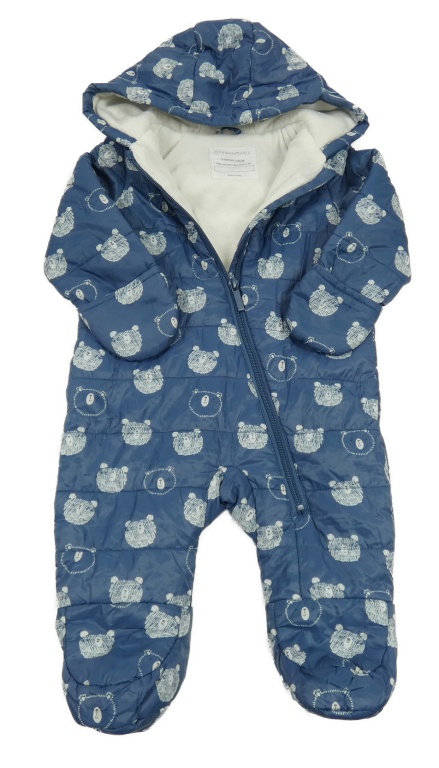 Tmavomodro-bílá šusťáková zimní kombinéza s medvídky a kapucí Primark