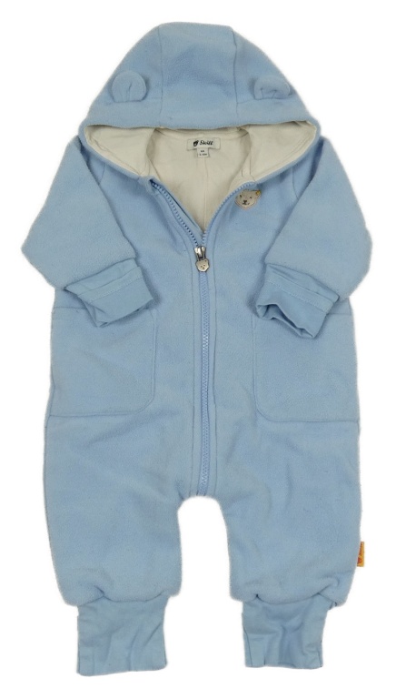 Světlemodrá fleecová podšitá kombinéza s medvídkem a kapucí