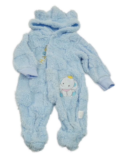 Světlemodrá chlupatá kombinéza se slonem a kapucí