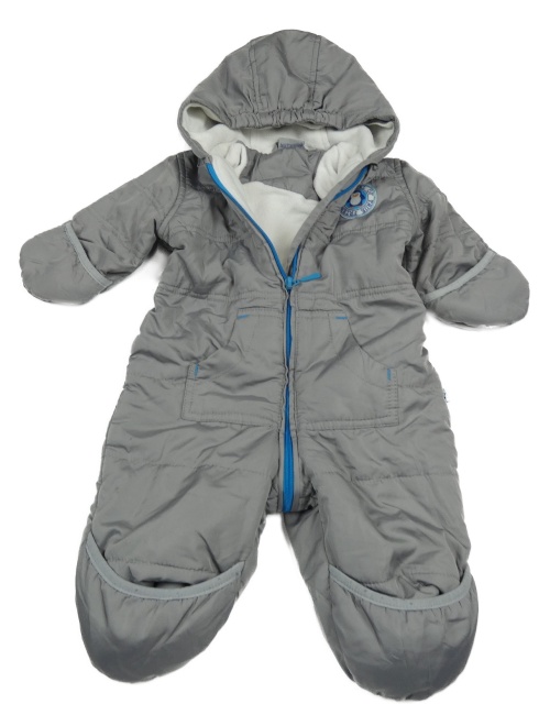 Šedá šusťáková zimní kombinéza s nášivkou a kapucí Impidimpi