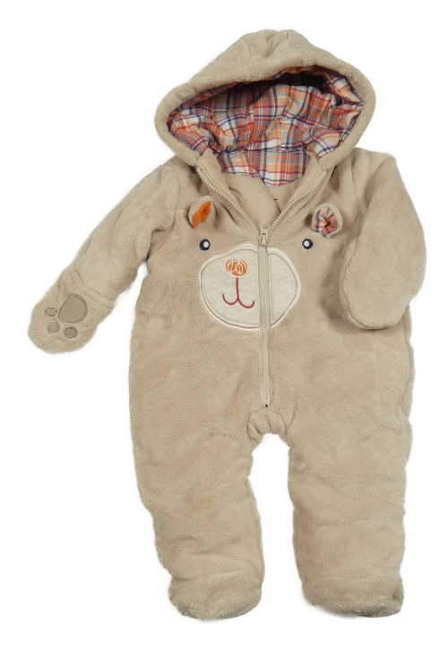 Béžová chlupatá zateplená kombinéza s medvědem a kapucí St. Bernard