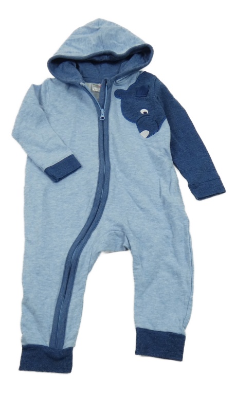 Světlemodrá melírovaná lehká tepláková kombinéza s medvídkem a kapucí+