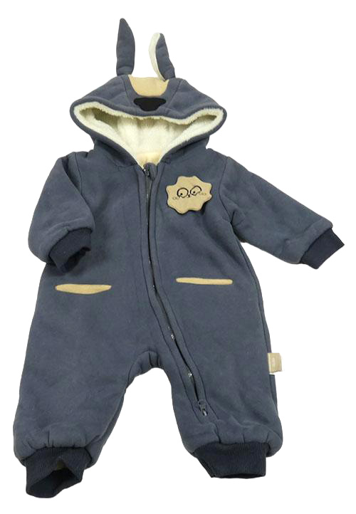 Tmavomodrá tepláková zateplená kombinéza s kapucí - králík