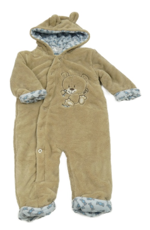 Hnědá chlupatá zateplená kombinéza s medvědem a kapucí Ergee