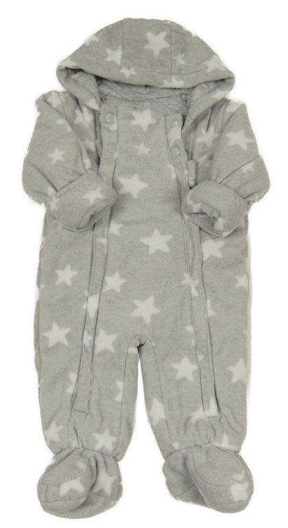 Šedo-bílá fleecová zateplená kombinéza s hvězdami a kapucí M&S