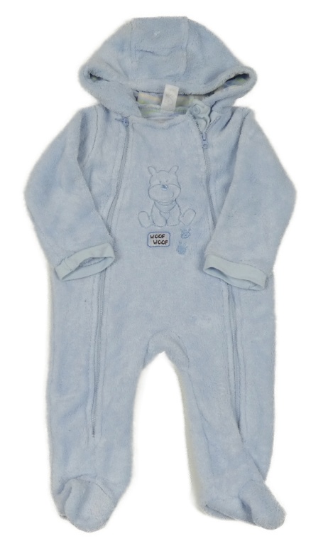 Světlemodrá plyšová kombinéza s pejskem a kapucí