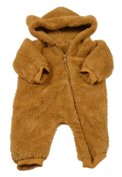 Hnědá chlupatá kombinéza s kapucí