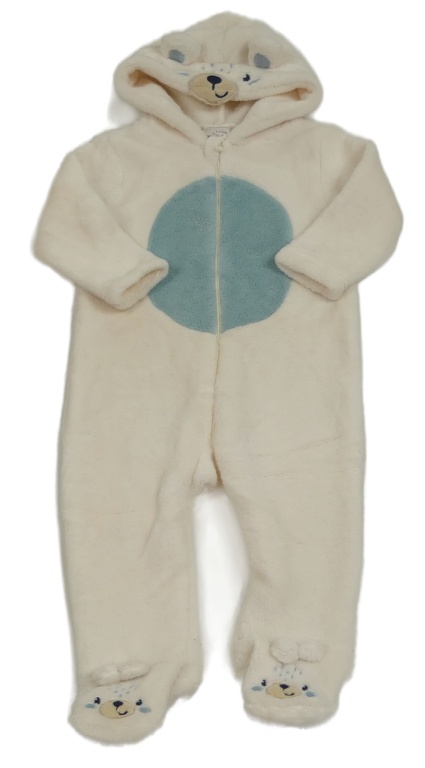 Vanilkovo-modrá chlupatá kombinéza s kapucí