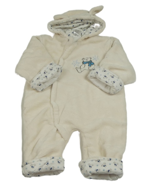 Smetanová chlupatá zateplená kombinéza s medvědem a kapucí