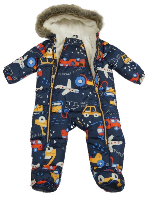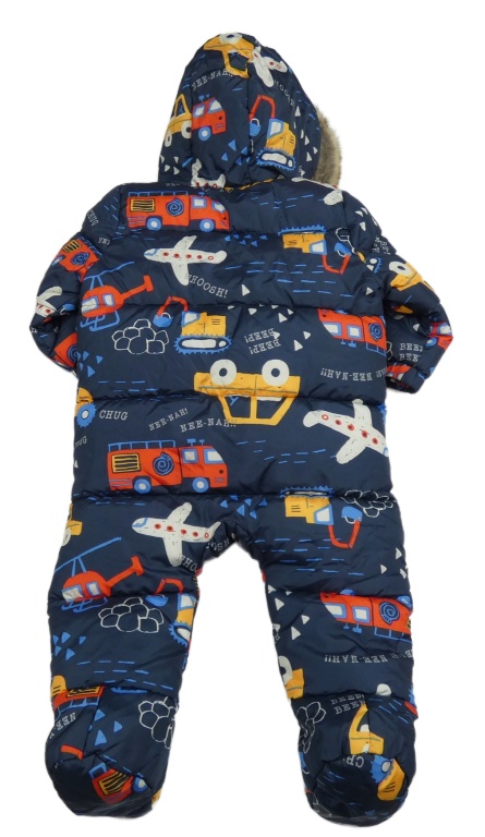 Tmavomodrá šusťáková zimní kombinéza s hasiči a kapucí F&F