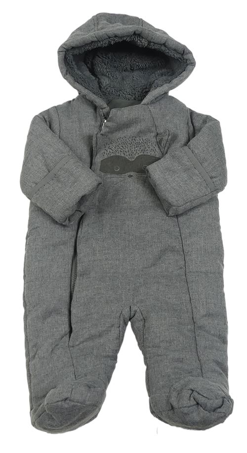 Tmavošedá melírovaná zimní kombinéza s mývalem a kapucí Matalan