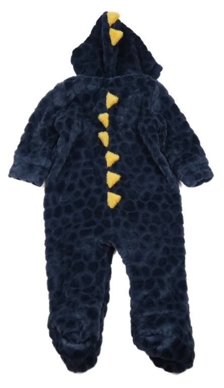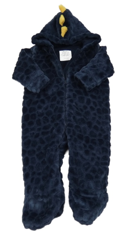Tmavomodrá vzorovaná chlupatá podšitá kombinéza s ostny a kapucí F&F