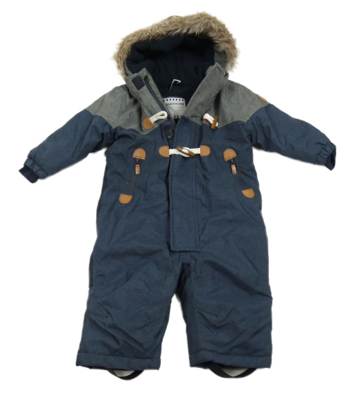 • Tmavomodro/šedá vzorovaná melírovaná šusťáková zimní kombinéza s kapucí s kožešinou Topomini