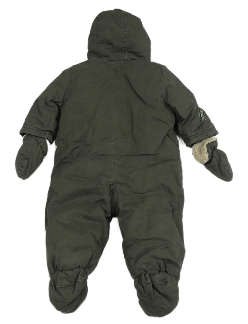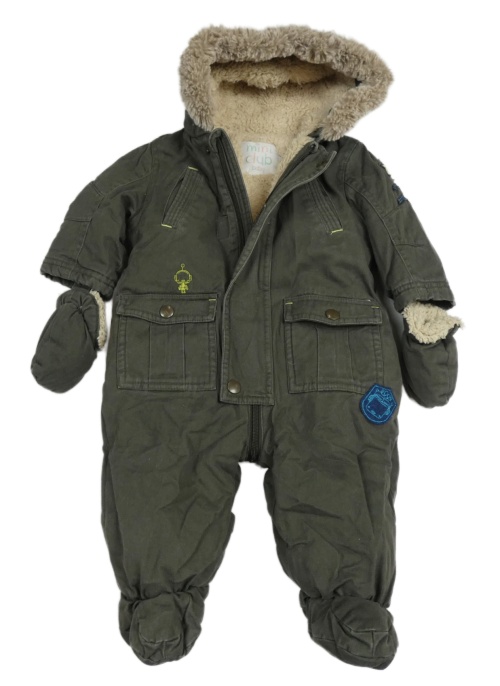 Khaki riflová zateplená kombinéza s kapucí + rukavice Miniclub