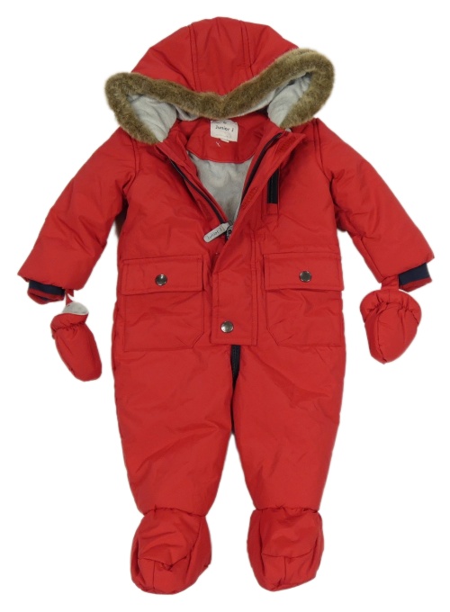 Červená šusťáková zimní kombinéza s kapucí + rukavice Jasper Conran