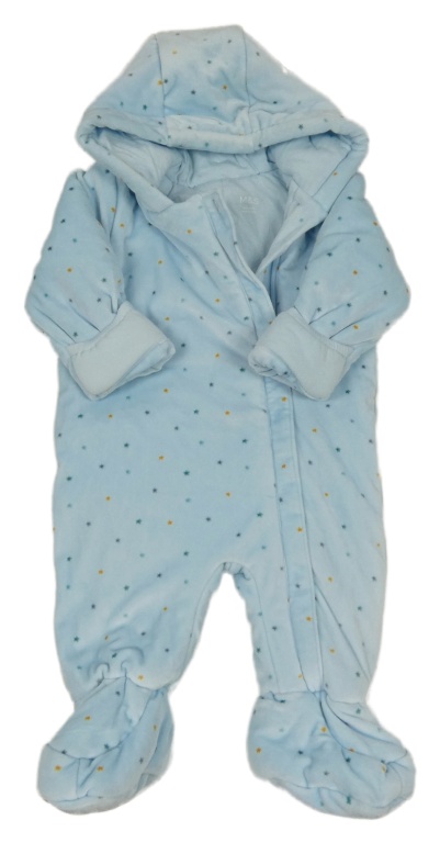 Světlemodrá plyšová zateplená kombinéza s hvězdami a kapucí M&S