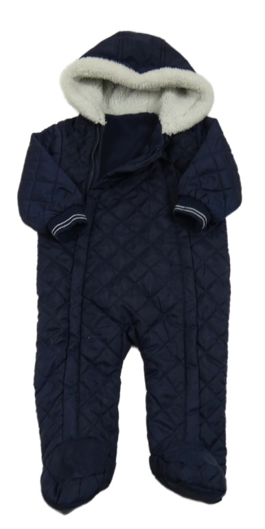 Tmavomodrá šusťáková zimní kombinéza s kapucí