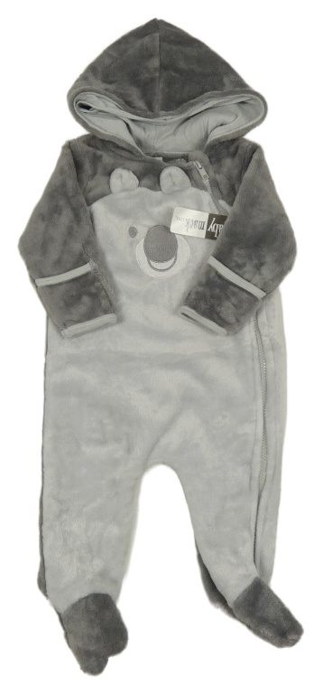 Nové - Šedá chlupatá kombinéza s medvědem a kapucí