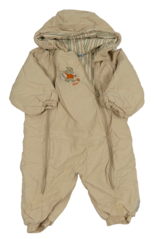 Béžová zimní kombinéza se zvířátkem a kapucí