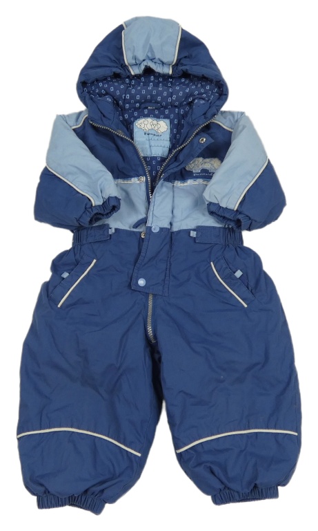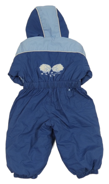 Tmavomodro-modrá šusťáková zimní kombinéza s ovečkami a kapucí