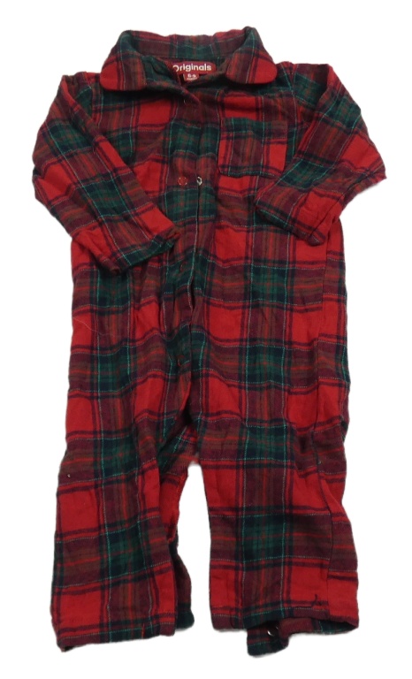 Červeno-zelená kostkovaná flanelová košilová kombinéza