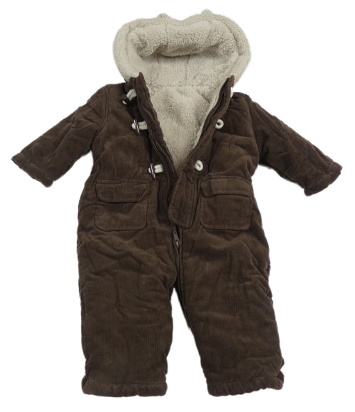 Hnědá zateplená manšestrová kombinéza s kapucí Mothercare