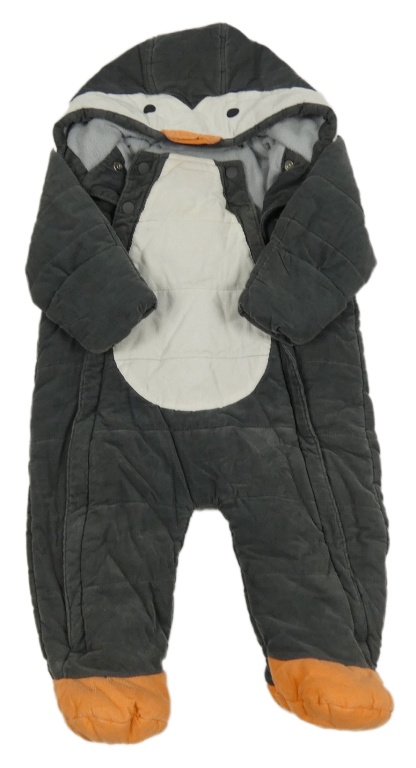 Tmavošedo-bílá manšestrová zateplená kombinéza s kapucí - tučňák M&S