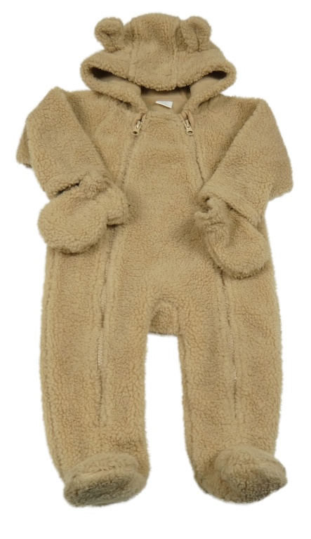 Béžová huňatá kombinéza s kapucí + rukavice Next