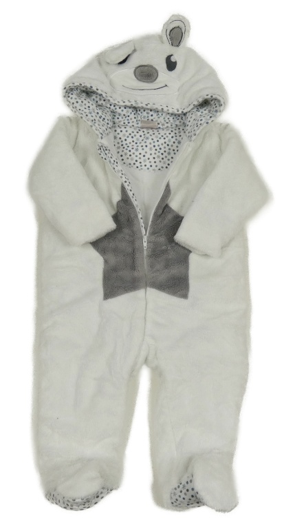 Bílá chlupatá zateplená kombinéza s hvězdou a kapucí- medvěd zm. Smile
