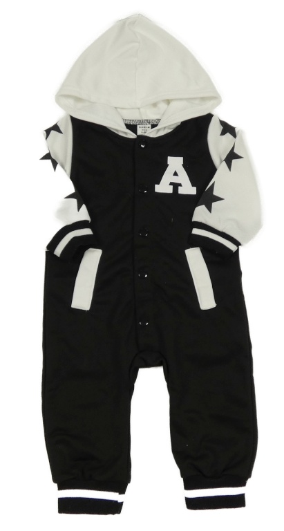 Černo-bílá kombinéza s písmenem a kapucí Shein