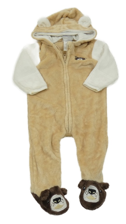 Béžovo-bílá chlupatá kombinéza s medvědem a kapucí