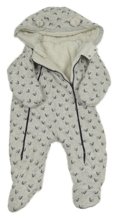 Šedá tepláková zateplená kombinéza s veverkami a kapucí