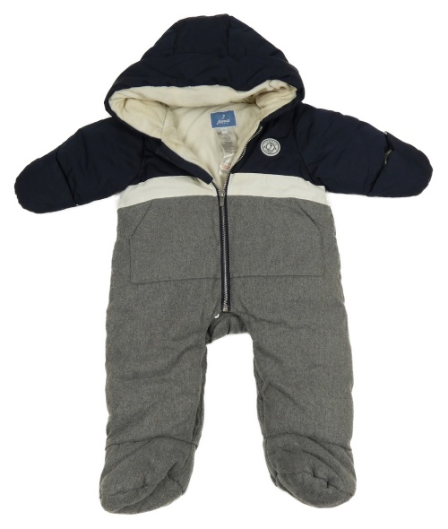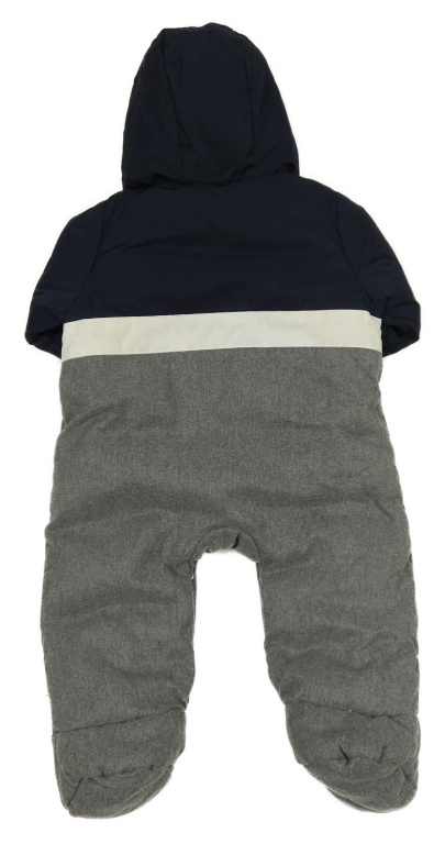 Tmavošedo-tmavomoddro-bílá zimní kombinéza s kapucí Jacadi