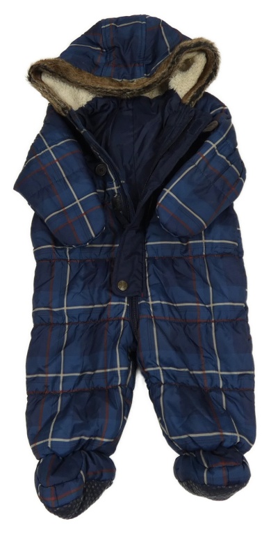 Tmavomodro-béžovo-hnědá kostkovaná šusťáková zimní kombinéza s kapucí Nutmeg