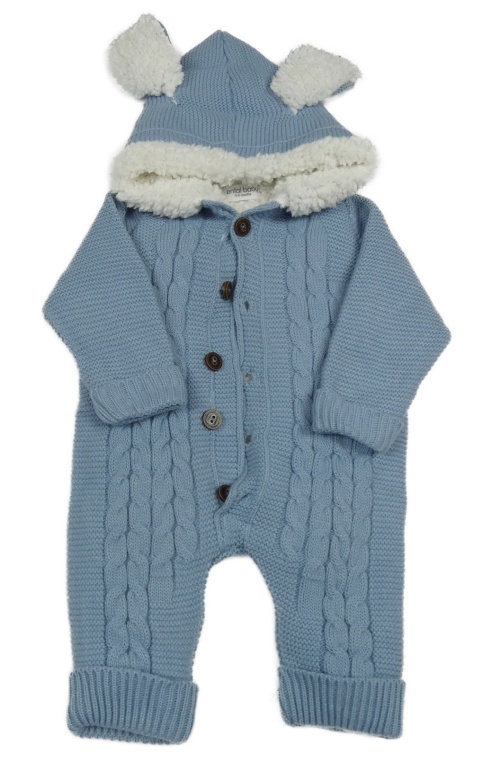 Modrá vzorovaná pletená zateplená kombinéza s kapucí s oušky enfal baby