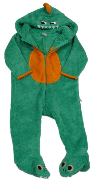 Zeleno-oranžová plyšová kombinéza s kapucí - příšerka Smile