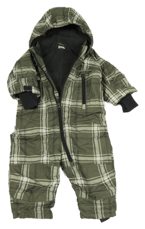 Khaki-světlezelená kostkovaná šusťáková zimní kombinéza s kapucí H&M