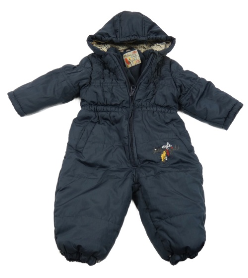 Tmavomodrá šusťáková zimní kombinéza s kapucí