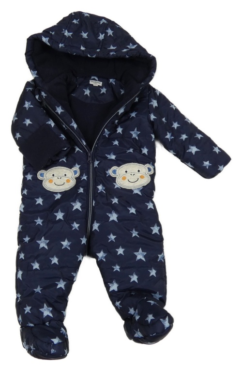 Tmavomodrá šusťáková zimní kombinéza s hvězdami a kapucí Bluezoo