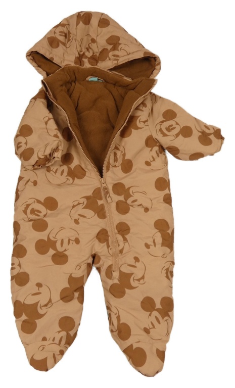 Hnědá šusťáková zimní kombinéza s Mickeym a kapucí Disney